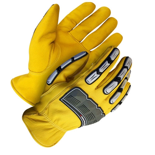 Top grain Cowhide palm with added Cowhide split palm, thumb, and index finger Palm, index finger and thumb all sewn